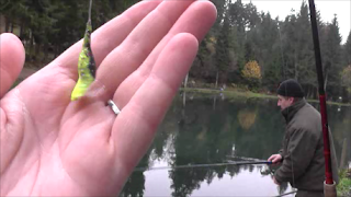 I had asked Emil about the rules and it seemed that Berkley Powerbait Dough was the only bait allowed and most of the emphasis was on how to kill the Trout once caught, a swift hit to the back on the head with a priest and then cut the throat with a knife before any unhooking or photos. Emil had kindly lent me a small 6' telescopic rod with a small 3000 sized reel loaded with 5lb line, the rigs were a little confusing to me at first as we used loaded floats attached to 5 barrelled swivels to reduce twisting with a 2 meter trace of 4lb line with a size 10 hook, and a few split shot about 12" away from the bait. It wasn't until I realised that the bait was fished like a lure and the float was only to aid in casting and even more so, to show other anglers where you were fishing so you could avoid tangling together. Emil taught me to twist two different colours of Berkley Powerbait together into sausage then divide up and rolled into small balls the size of marbles. then the hook was pushed into the bait and the rolled into an elongated tear shape, and moulded over the knuckle on your hand to produce the tail section of a shad. I was really impressed at how good the bait looked as it spun and vibrated mimicking a small fish as it was slowly pulled through the clear water.